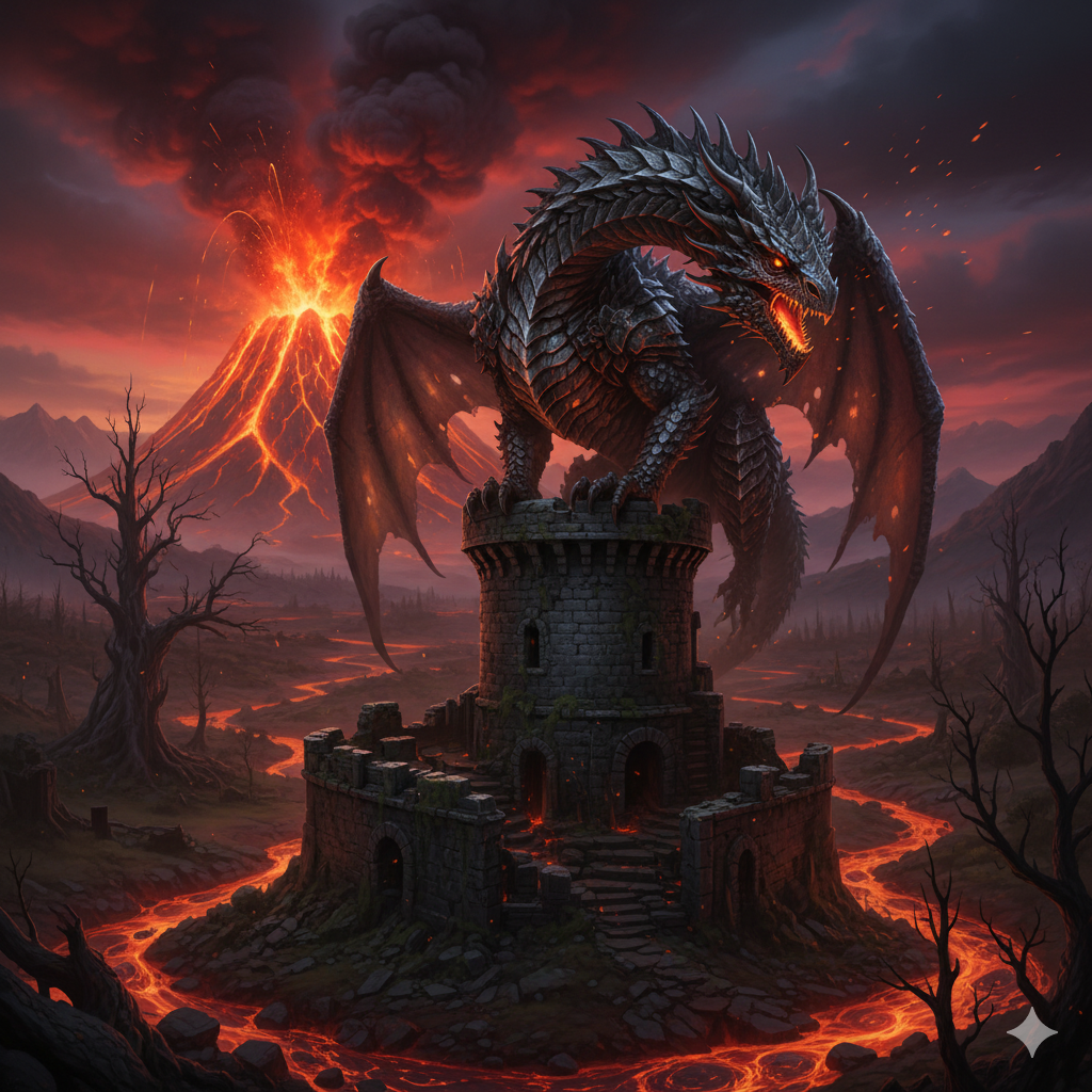 Example: “A majestic dragon perched atop a crumbling castle tower in a fantasy realm during a volcanic eruption. Rendered in hyper-realistic digital painting style with molten lava glow lighting. Include smoke billowing, sparks flying, and intricate dragon scales.”