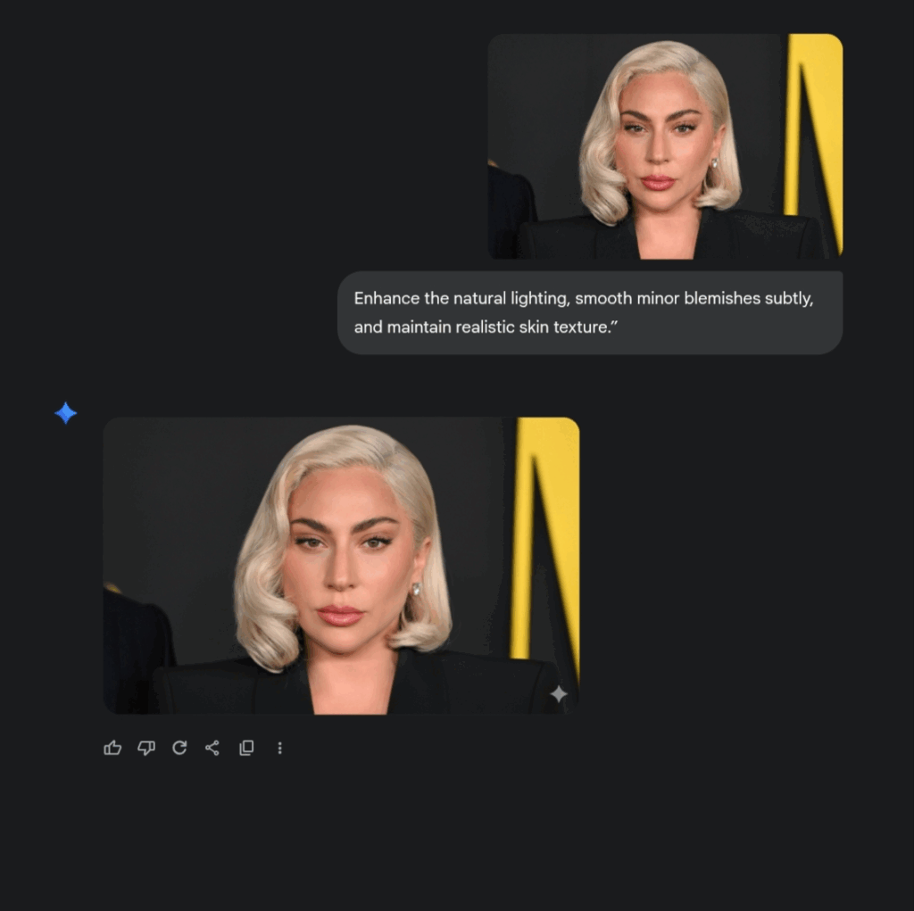 “Enhance the natural lighting, smooth minor blemishes subtly, and maintain realistic skin texture.”
